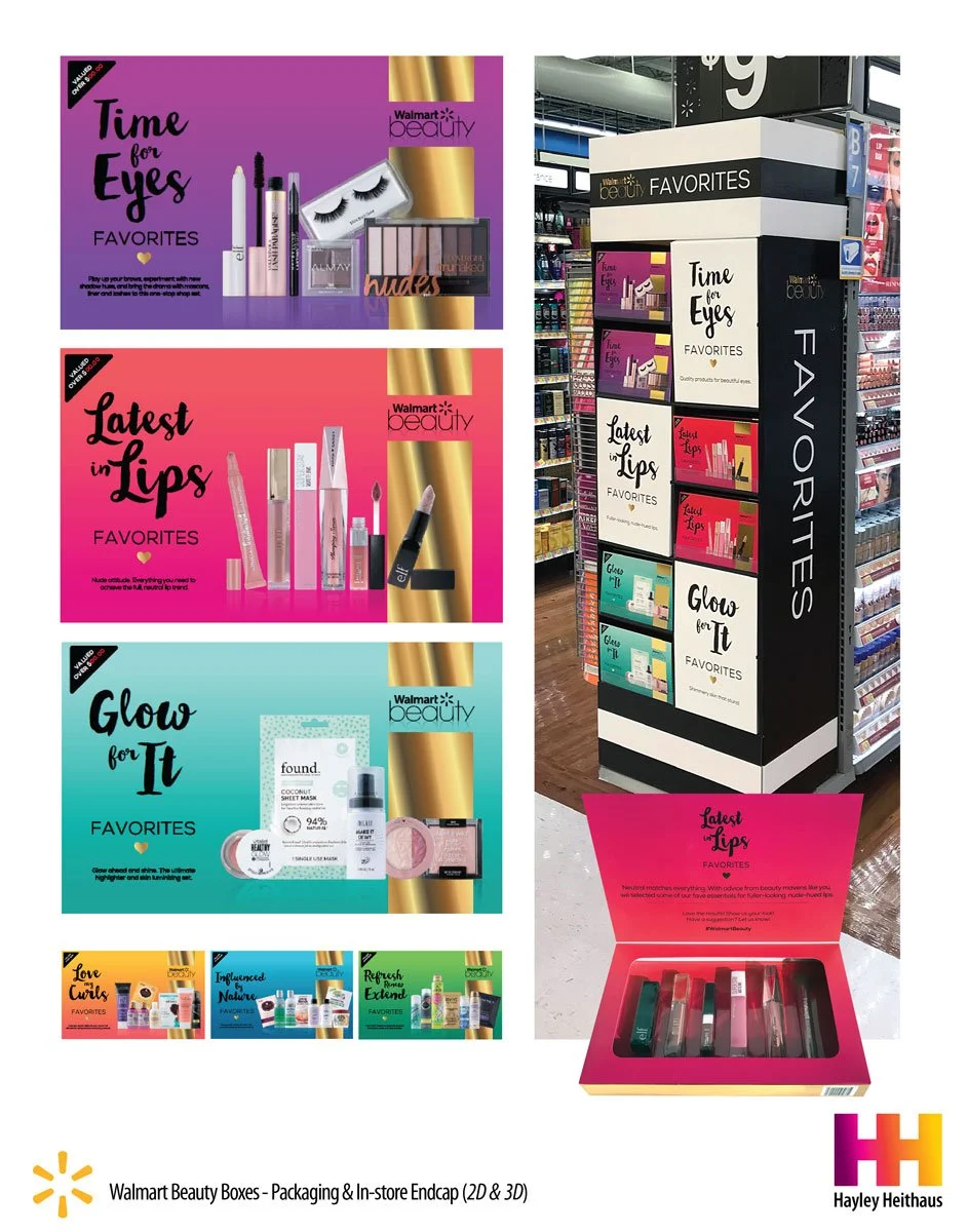 Walmart’s desire to create awareness of their top selling beauty brands, became one of my favorite packaging projects I remember working on recently. They were to be available in-store and by subscription. I participated in almost every step of this project. This included ideation, 2D, 3D, photoshoots, art direction, press checks, and so forth. Walmart’s beauty boxes sold out in-store, in less than a week! And many vlogging videos can still be found showing people unboxing their pretty subscription boxes. It was such a hit, I got participate in designing them 2 years in a row!