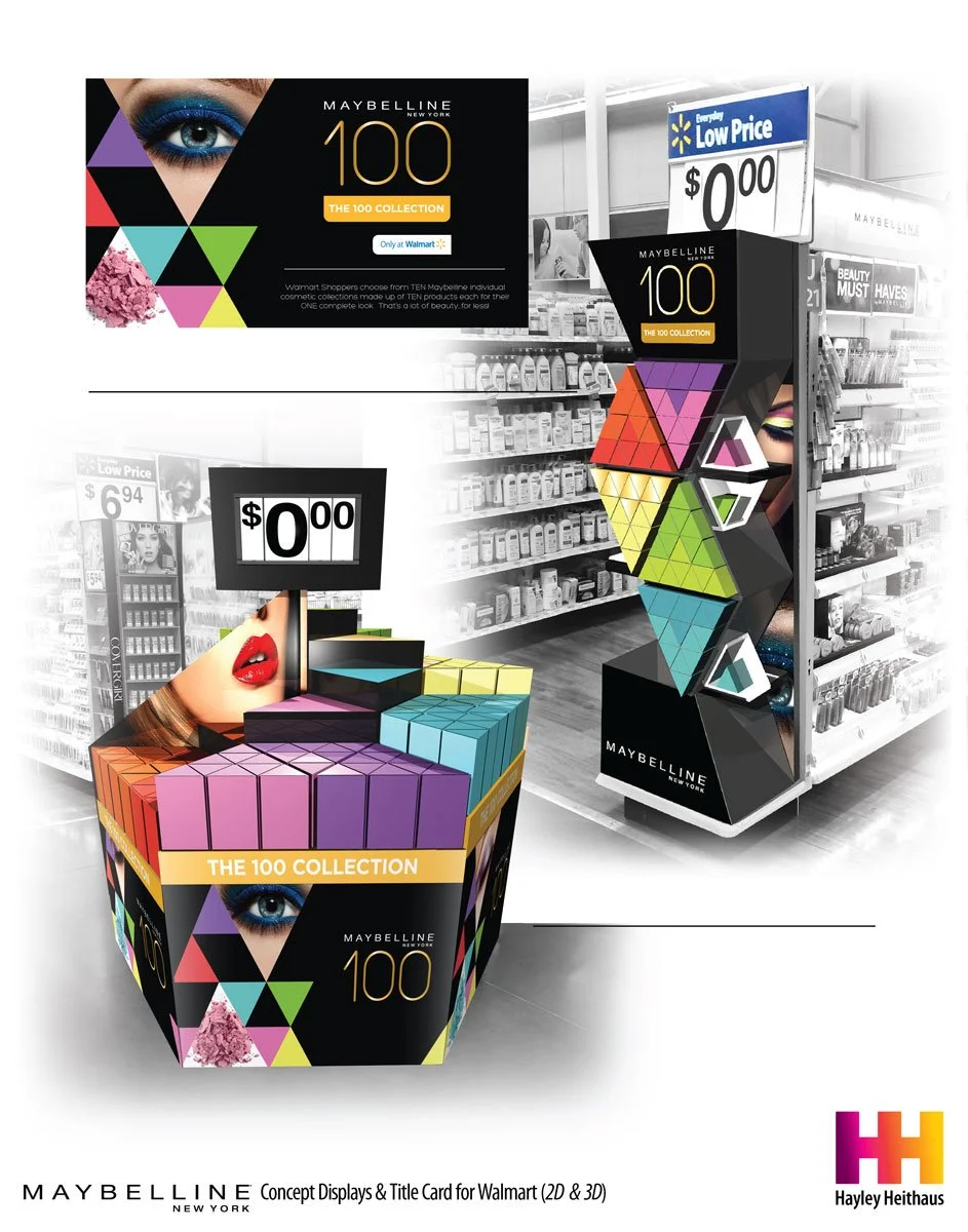 Being able to ideate how packaging interacts with graphic thematics in the front end of design, is an absolute blast for me. I collaborated with another designer to come up with a Maybelline packaging idea that would tie into the main triangular visual theme of the campaign. Our 3D renderings helped show how it aided in creating consistency throughout each platform.